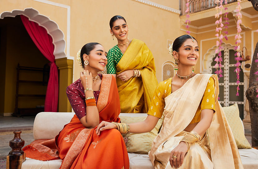 Shringar, the celebration of the Rasa Raja, exalts in the beauty of adornment. Each creation, woven with tenderness and inspired by the rituals of Shringar Rasa, becomes a reflection of the maiden's journey towards her beloved. Through intricate patterns, rich hues, and timeless motifs, these pieces weave a tale of anticipation and longing as she adorns herself for union. From the delicate ornaments to the blossoming flowers and the parrot bearing her messages, every element paints a picture of love's sweet anticipation, capturing the essence of Shringar in all its splendor. The collection is woven in Banaras and Kanchipuram, two of India’s oldest handloom clusters.